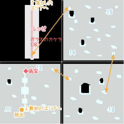 ※10番の宝箱が抜けていて変な所にあるのはマップを作るときに番号を間違えたせいで深い意味はありません。