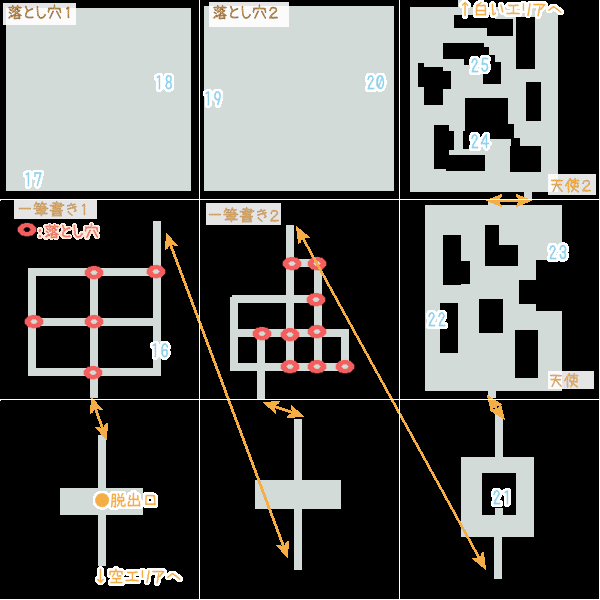 | ・最初のエリア ・空のエリア ・落とし穴エリア ・白いエリア |