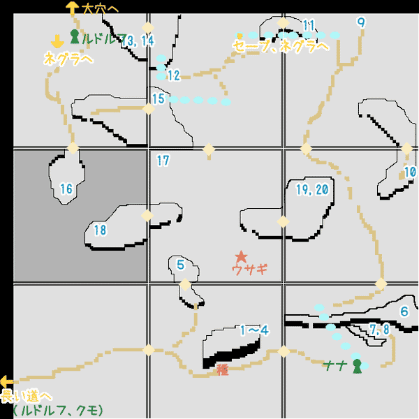 ★ウサギと書かれた場所には幸運のウサギが出る。倒すと幸運のウサギを落とす。